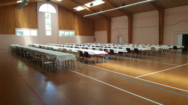 - Un rideau peut séparer la grande salle en deux (voir tarifs)