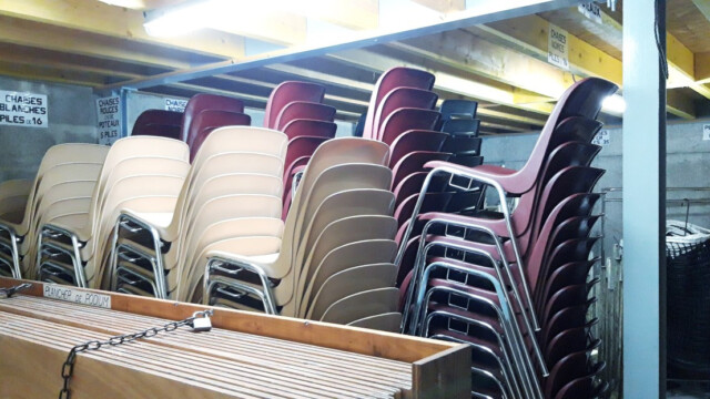 - Une estrade peut également être montée uniquement dans la grande salle (voir tarifs)